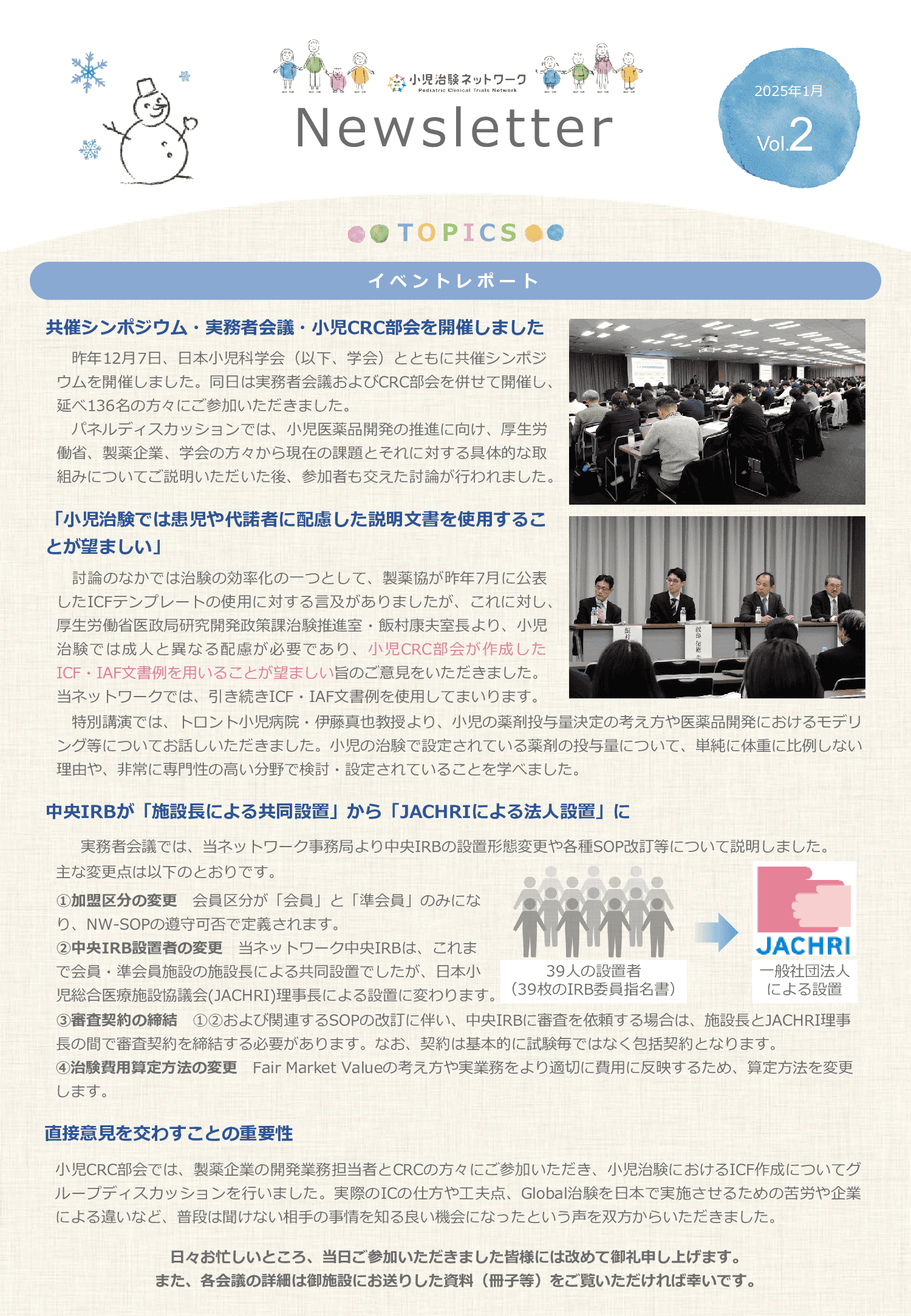 ニュースレターでは、小児治験ネットワークの活動や治験に関する情報を紹介しています。